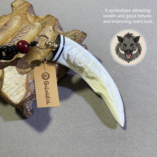 GoLuckLink Handcrafted Wild Boar Tusk Amulet Necklace – Symbol of Strength & Protectionof Wealth.